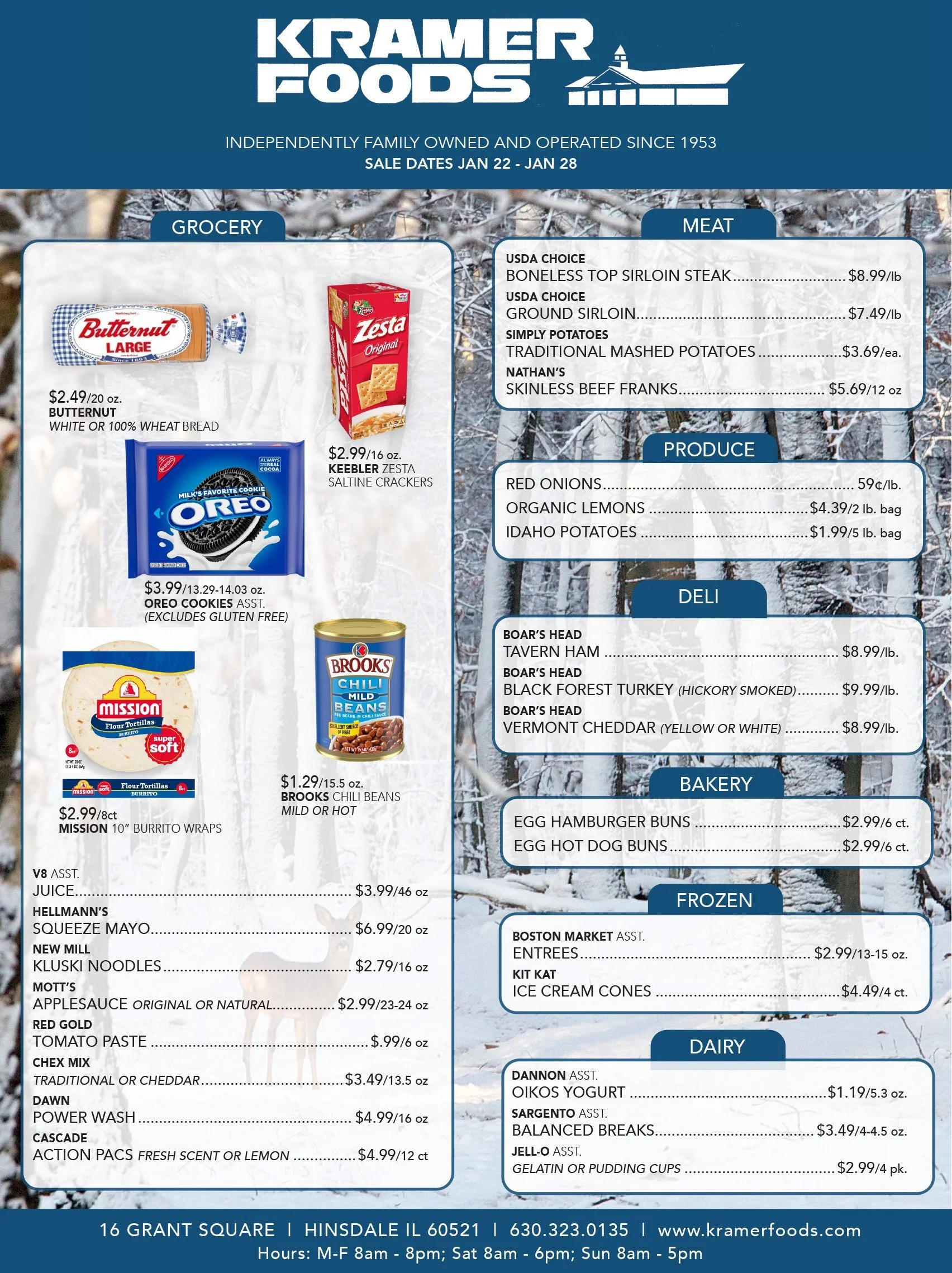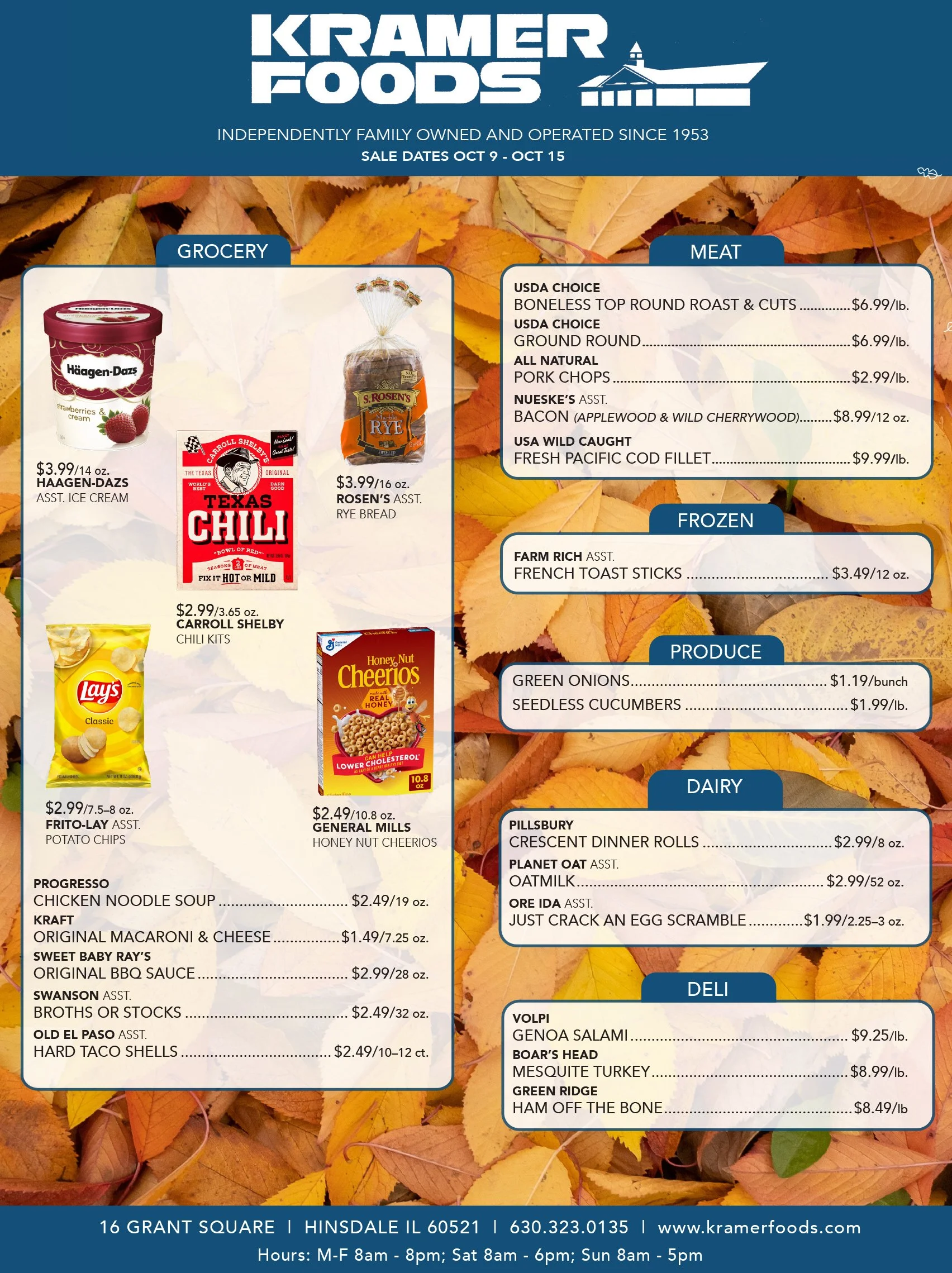 An image of our weekly sale ad. Please call us at 630-323-0135 if you would like us to go over our sale items with you.